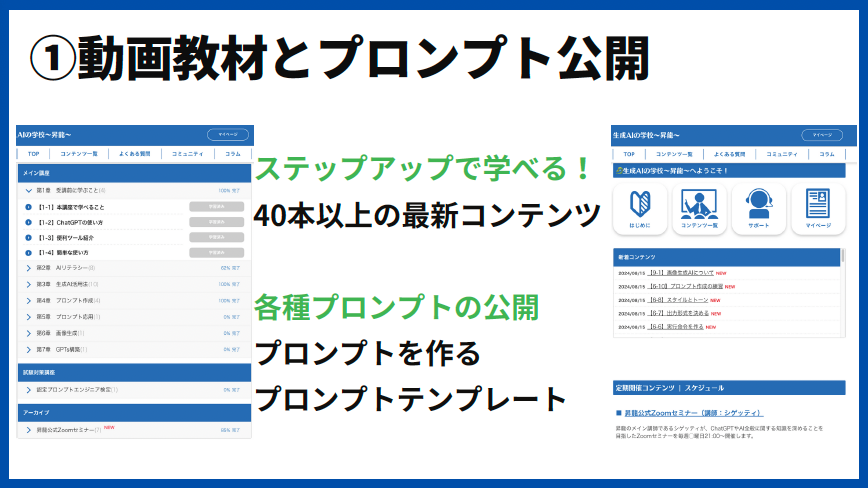 シゲッティのAIスクール『昇龍』に参加すると次のサービスが利用できるようになります。